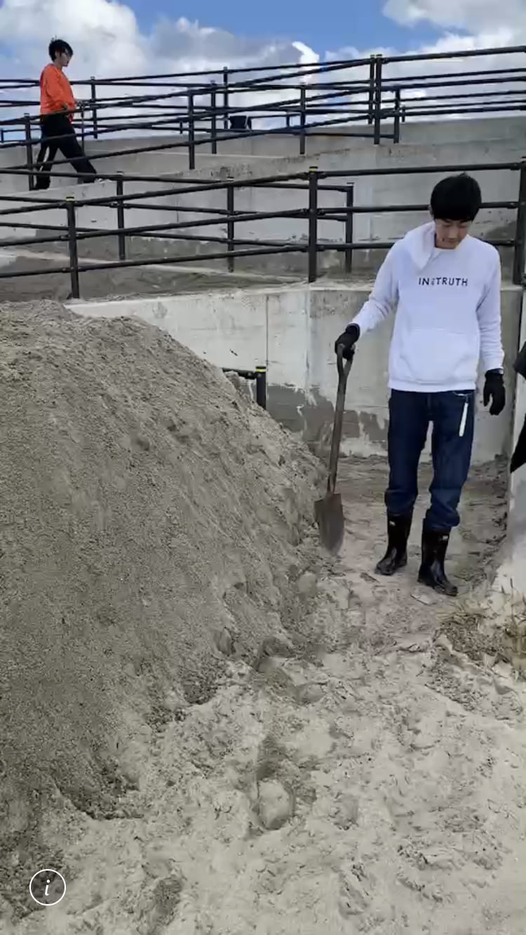 今回は、今はボランティアハウスのある笹屋敷地域に住み、震災前は荒浜に住んでいらっしゃった方から、「荒浜の海を見たいけど、防潮堤を登るためのスロープが砂で埋まっているから見ることができないんだよね。」という声を受けて、深沼海水浴場の防潮堤にあるスロープの砂を取り除く清掃活動を行いました。