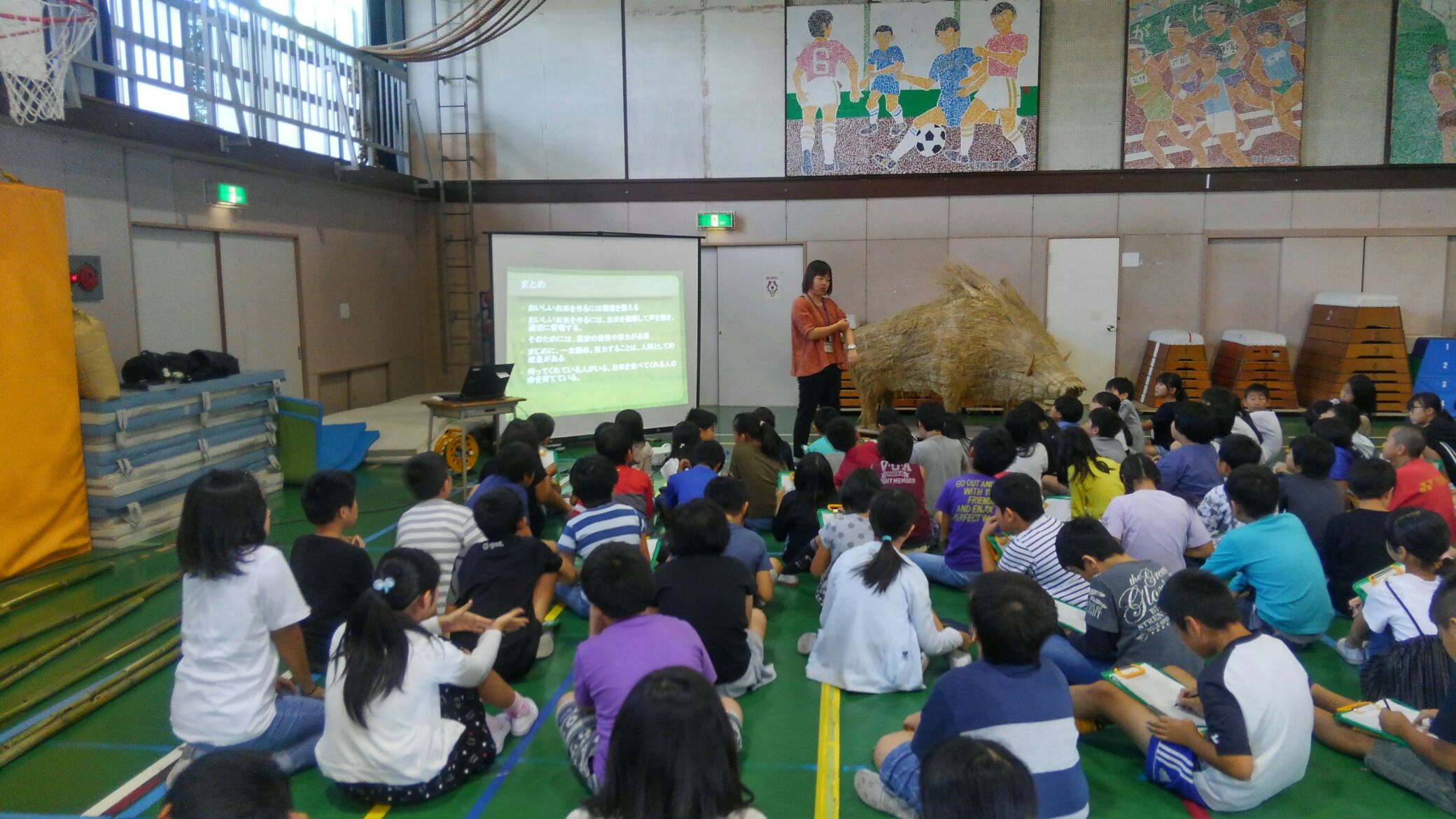9月19日、沖野小学校の体育館で、5年生の調べ学習として、