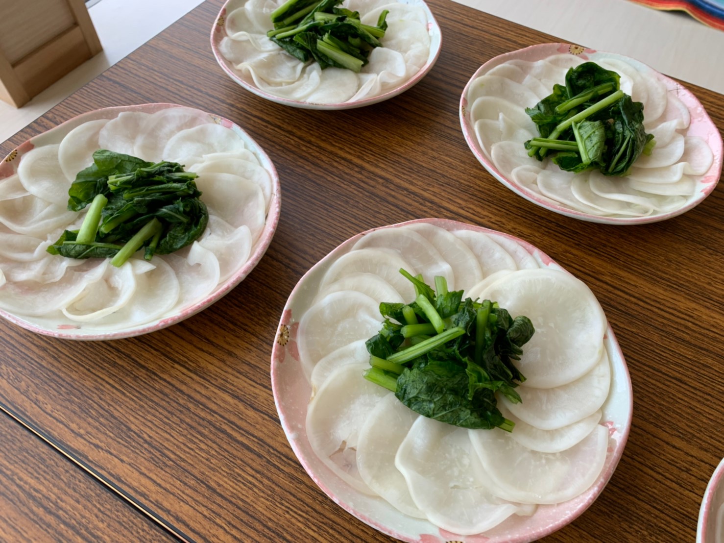 田植え後はみんなでご飯です!「梅と小松菜のおにぎり」「かぶの葉とおかかのおにぎり」「かぶの浅漬け」そして季節の野菜をふんだんに使った「豚汁」でした。おいしくて大人も子供もみんなでおかわりしちゃいました!