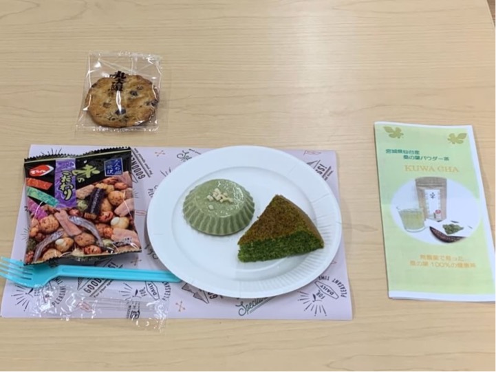 お茶菓子として、「桑茶のチーズケーキ」と