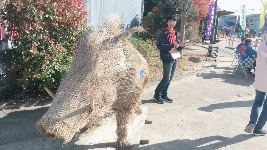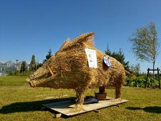 わらアートの出張展示では今年の干支にちなんで「わらイノシシ」を展示いたしました。