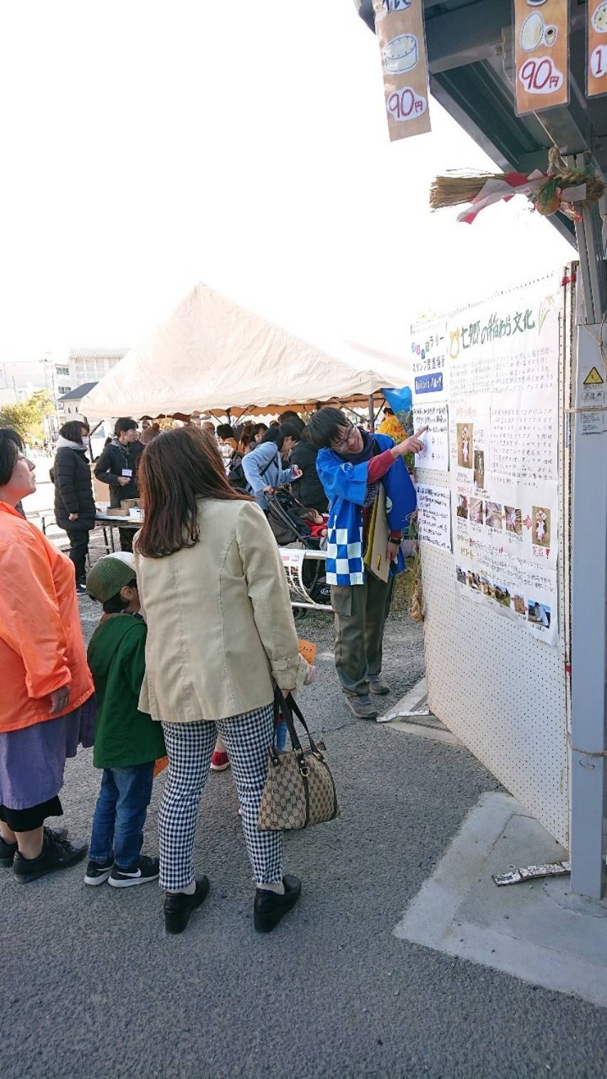 七郷地域の伝統文化であるしめ縄飾りについてなどを記載し展示した模造紙はスタンプラリーポイントとしてもされており、わら文化に対するクイズを通じて多くの方々にわら文化についての周知を行うことができました。