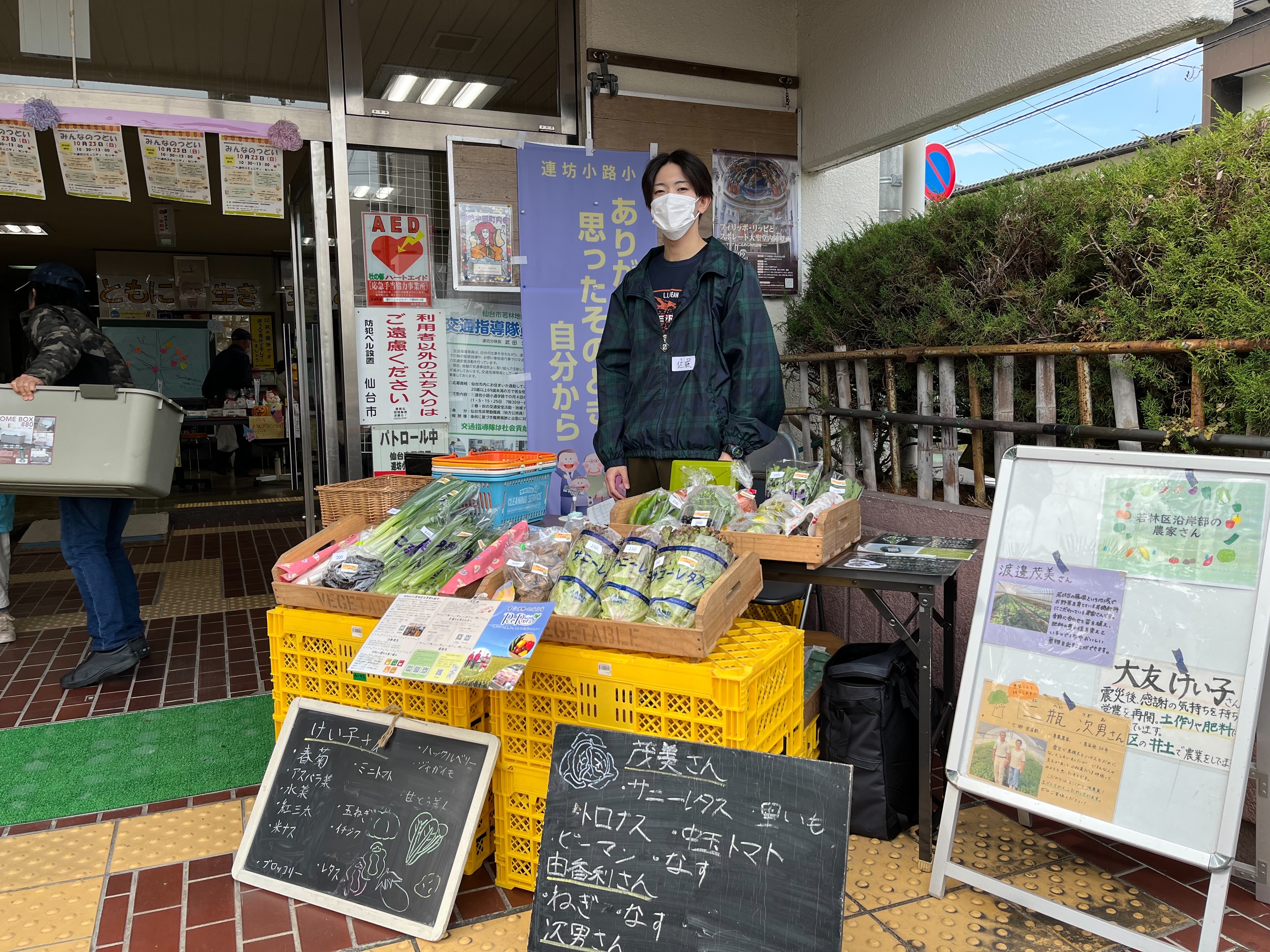 私たちは毎週土曜日に、若林区荒町にあるマンションの一角を借りて移動販売を行っています。
